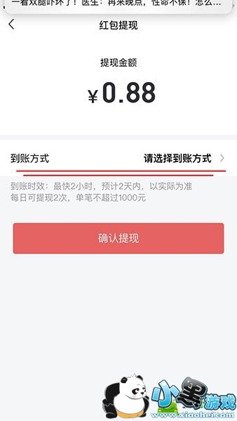 4、绑定好之后再点击提现,然后选择【到账方式】,最后点击【确认提现】就可以了。