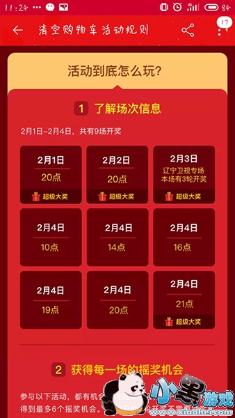 1、你可以在活动页面下方,加购指定的幸运商品来提升清空上限。不过每天最多3次。