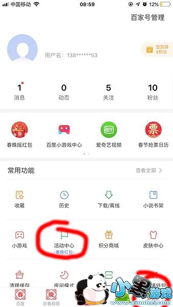 1、打开自己百度App,点击底部【我的】然后找到【活动中心】进入;