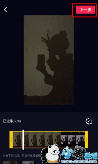 6.点击后,对自己的两段视频进行编辑调整,比如剪辑多余的部分,然后点击下一步。