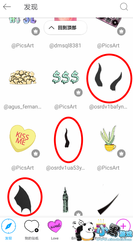 2、通过手机拍摄自己的影子视频之后,我们需要截取最后的一张影子照片,然后打开picsart通过“+”按钮进行编辑,使用“贴纸”功能添加恶魔的特效贴纸。