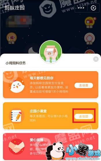 大家在蚂蚁庄园养小鸡活动中可以找到题目,答对之后可以获得免费的饲料奖励!