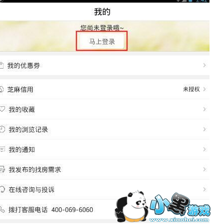 1、打开蚂蚁短租APP,点击应用界面右下角的“我的”,然后点击界面上方的“马上登录”;