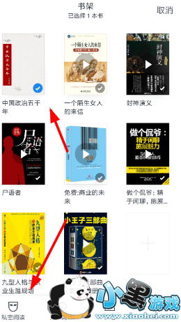 2、接下来需要勾选想设置为“私密阅读”模式的书籍,通过页面左下角的按钮就可以完成编辑,非常方便快捷!