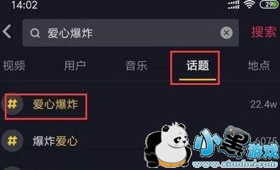1首先在抖音上搜索“爱心爆炸”,点击下面的话题;