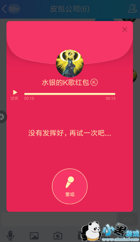 1、在QQ里碰到了k歌红包,大家第一步自然就是点击打开红包,而与其他类型红包不同的是,用户必须录音唱上一段相应的歌曲,才能够得到奖励!