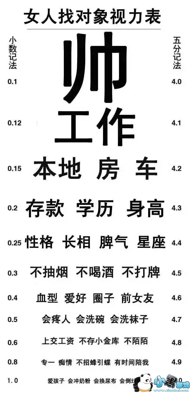 抖音找对象视力表图片。大家对自己找对象的眼力觉得怎么样呢?是好还是坏?今天小编为大家带来了抖音找对象视力表图片,下面就快和小编一起看看吧!喜欢的记得长按下载哦!