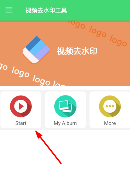 1、若是想要去除视频上的水印标识,我们就应该从“视频去水印工具”的页面里点击“Start”按钮,然后从手机本地添加视频素材。