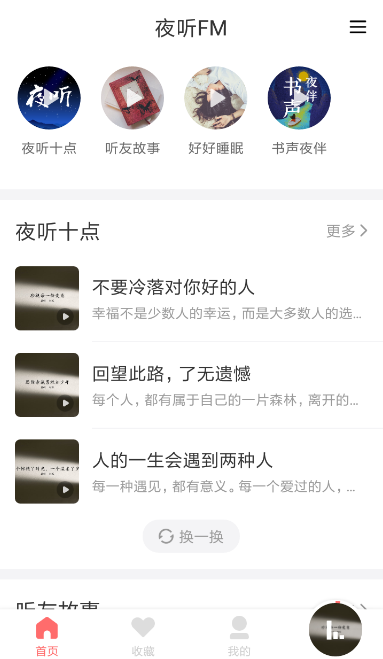 1、若是想要设置“定时关闭”的功能,大家就得先进入夜听FM首页,从中搜索找到自己想听的节目,点击进入播放界面。