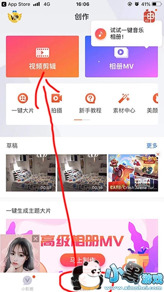 1、大家可以下载【小影】剪辑软件,或者其他的【短视频剪辑工具大全】,下载好之后打开App,点击底部【视频编辑】然后选择顶部的【视频剪辑】;