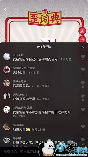 以上就是小黑为大家带来的沙雕指数是什么意思的相关内容,更多精彩资讯记得手机收藏关注小黑。