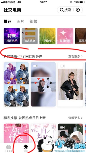 1、首先下载【天天向商】,然后点击底部的【模板】,然后点击“抖音神曲-下个网红就是你”后面的【查看更多】