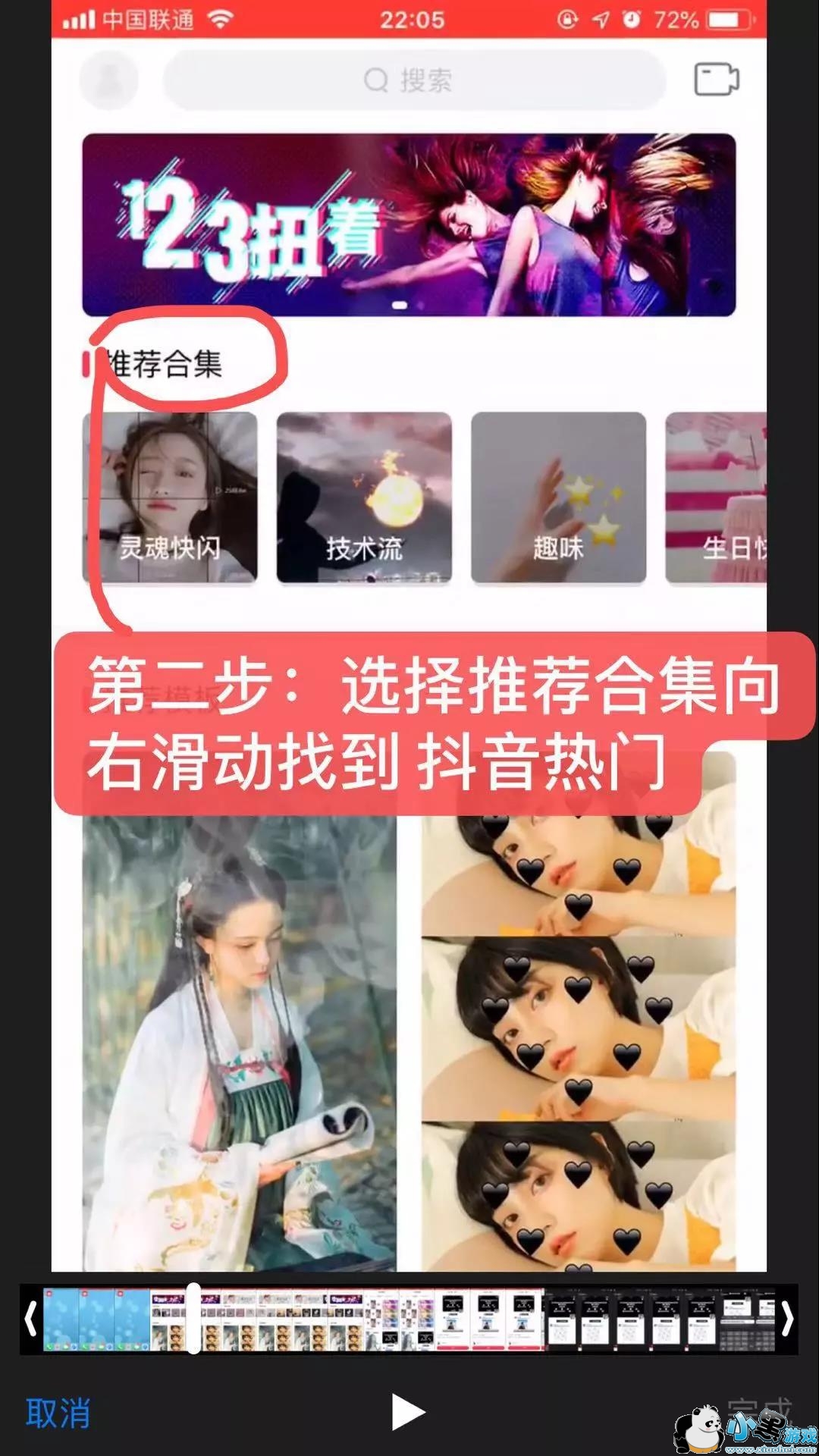 2、点击打开逗拍APP,点击合集,选择合集中的热门视频模板。