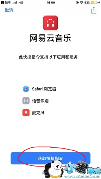2、打开之后直接点击【获取快捷指令】,在捷径app中就会自动的添加这个捷径功能;