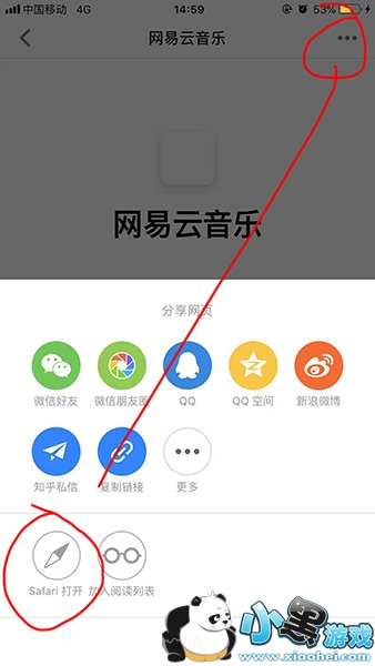 1、首先大家可以打开这条捷径添加【网易云音乐全能版捷径】;然后点击右上角的三个点使用safail浏览器打开;