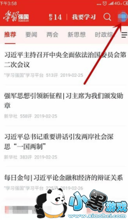 1、点击打开学习强国app,点击右上角的头像。
