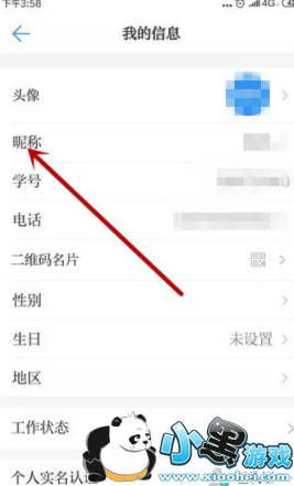 3、点击“昵称”,进行修改。