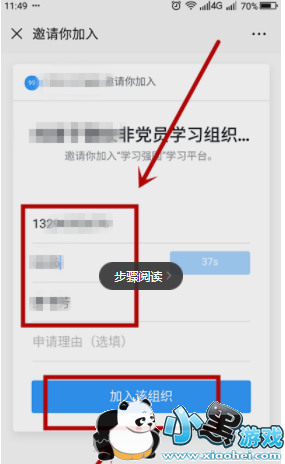 2、进行手机号码和验证码的输入,点击加入该组织。