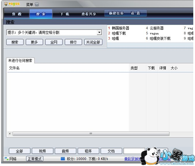 打开Vagaa哇嘎客户端,在搜索框里输入关键词,如果网络不好,显示的搜索结果就会很少,