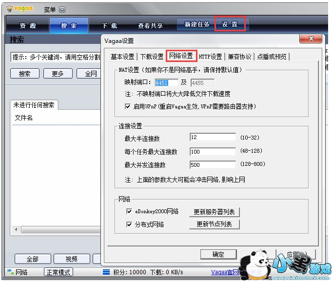 接着来解决这个问题,点击Vagaa上方的设置选项,再点击网络设置,