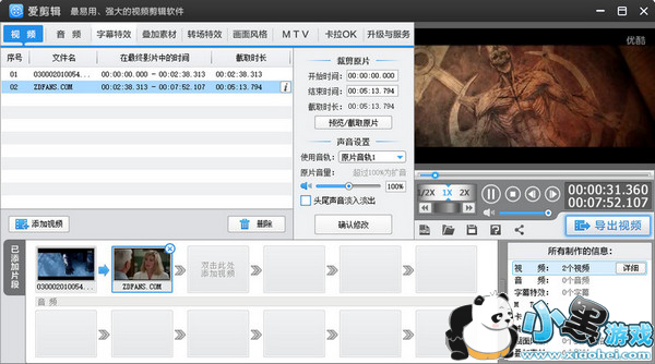视频编辑大师是一款专业的视频编辑软件,包含视频合并专家、AVI MPEG视频合并专家、视频分割专家、视频截取专家、RMVB视频合并专家的所有功能,是视频爱好者必备的工具。