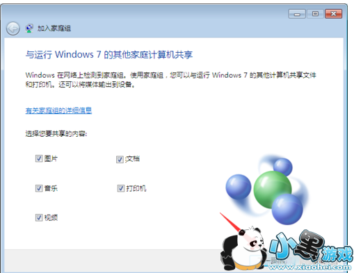 接着从打开的“创建家庭组”界面中,按照向导进行操作,选择要共享的文件内容,点击“下一步”按钮。
