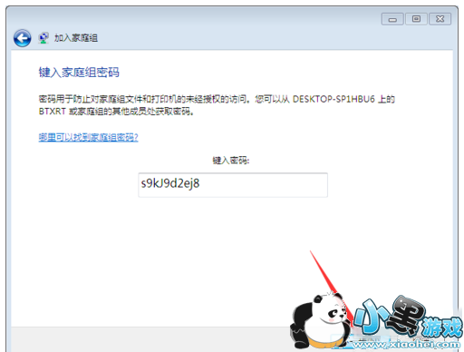 此时“加入家庭组”界面将显示“键入家庭组密码”窗口,在此输入Win10系统“家庭组密码”,点击“下一步”按钮。