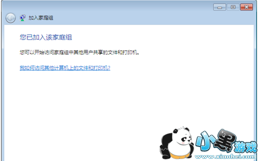 当显示“你已成功加入家庭组”界面时,表明成功加入家庭组,点击“完成”按钮。如图所示: