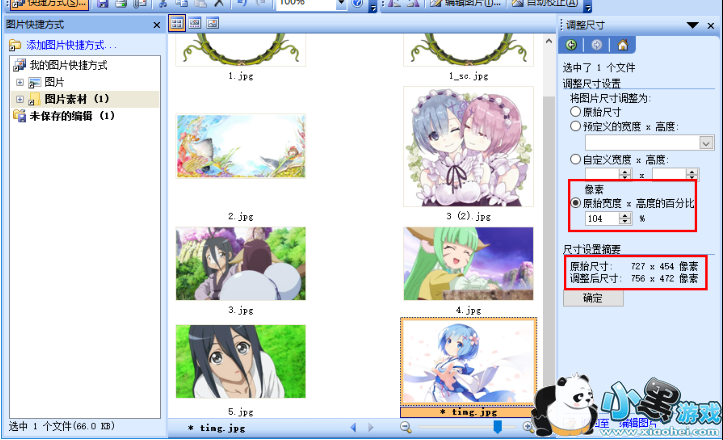 6、如图,我们调整图片尺寸设置后,可以在尺寸设置摘要中查看原始尺寸以及调整后尺寸。