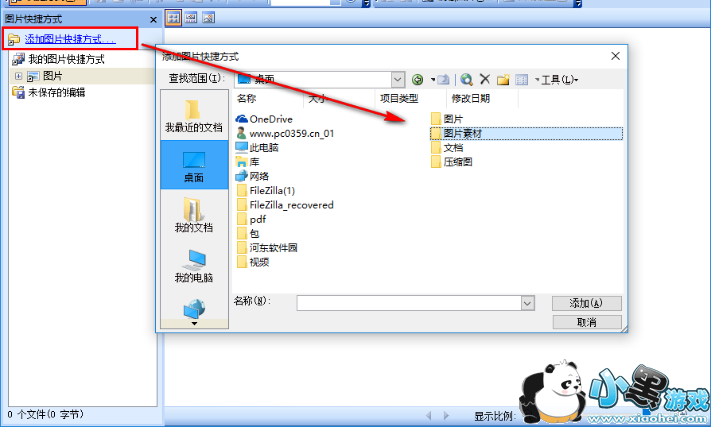 2、我们点击“添加图片快捷方式”按钮,在呼出的窗口中选择要处理的图片所在文件目录位置。