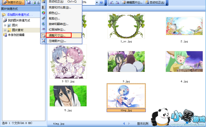 4、用户选择图片后,我们点击菜单栏上的“图片”按钮,在呼出的操作选项中选择“调整尺寸”。