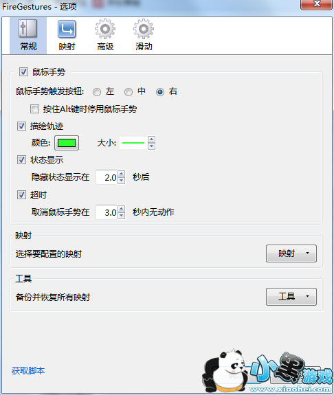 4、打开后界面如下图所示,在“常规”界面是设置鼠标手势的,比如是需要点击左键还是右键或者中间,还有时间间隔等;