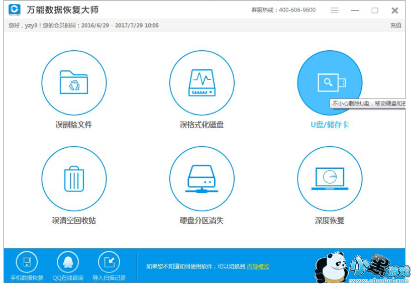将相机、手机连接至电脑,运行万能数据恢复大师,选择“U盘/储存卡”功能,按照提示进入下一步,
