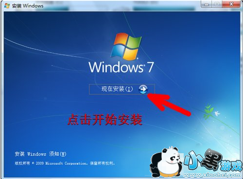 5、如图所示,这便是Windows7的安装程序,中间有一个开始安装的按钮,点击此按钮之后便开始安装系统了。