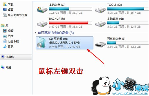 4、在资源管理器中会发现一个新的移动设备,就跟真实的光驱一样,其实这就是我们加载的虚拟镜像。你只需双击这个移动磁盘,就可以打开安装程序了。
