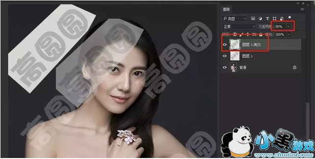 4、键入快捷键:Ctrl+J,复制“图层1”,生成“图层1 拷贝”,并把图层透明度改为:50,如图: