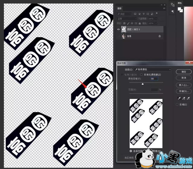8、关闭“背景”图层,打开【选择】-【色彩范围】,用吸管去吸字体上的白色,颜色容差为:80,如图: