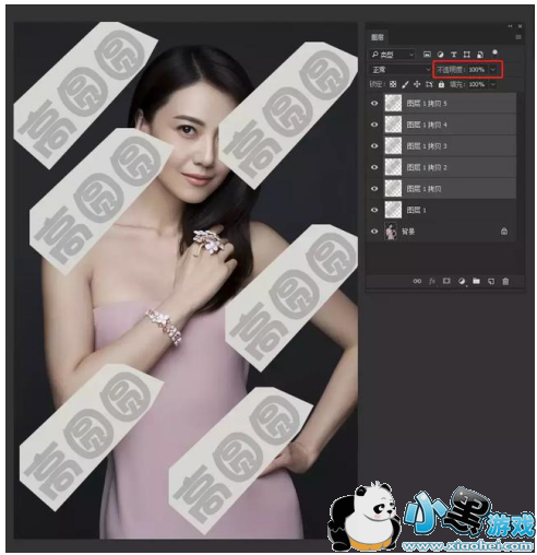 5、然后把“图层1 拷贝”,移动拼合到每个水印上,如图: