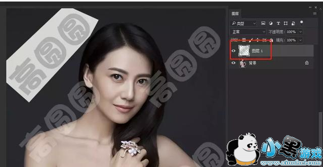 2、通过观察,我们发现左上角的水印,我们可以单独抠出来,键入快捷键:Ctrl+J,复制图层,留着后面使用,如图: