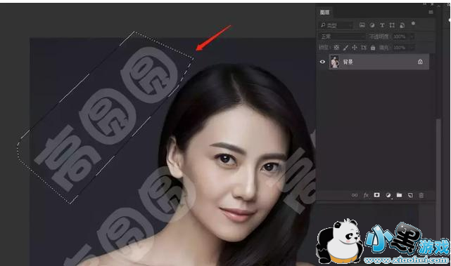 9、并点击确定,生成选区,这时,选择“背景”图层,键入快捷键:Ctrl+J,以选区范围,把原图背景上的水印抠出来,如图:
