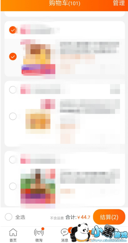 打开手机淘宝,点击进入购物车,勾选商品进行付款,