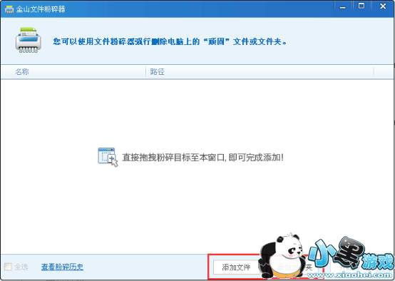 2、可单击“添加文件”或“添加文件夹”按钮,从系统中导入想删除的文件或文件夹,导入完毕并确认是要粉碎的那个文件后,点击下方的“彻底删除”按钮即可。