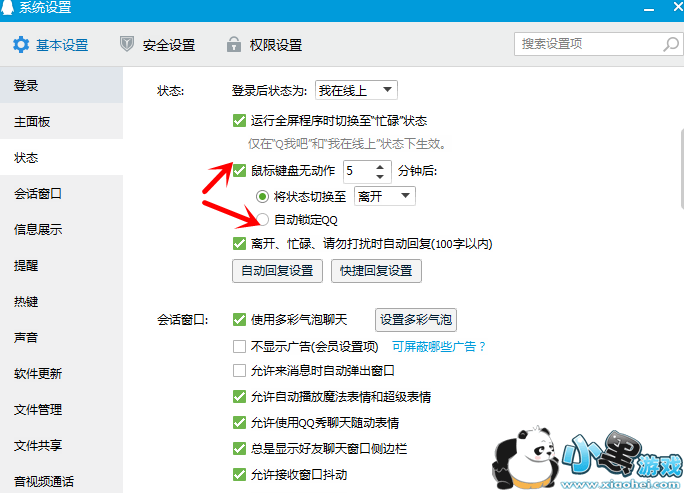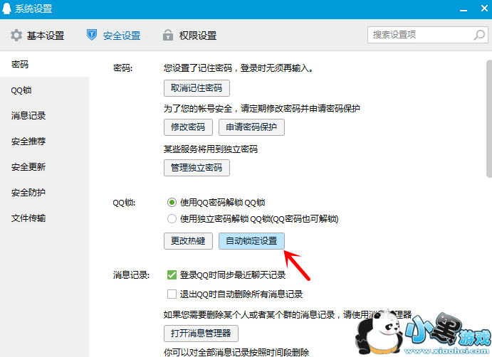 6、这时,我们在出现的页面中设置锁QQ锁的时间及选择“自动锁定QQ”即可;