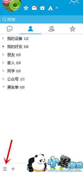 2、在QQ首页中,我们选择并点击该页面左下角的“三杠”图标;