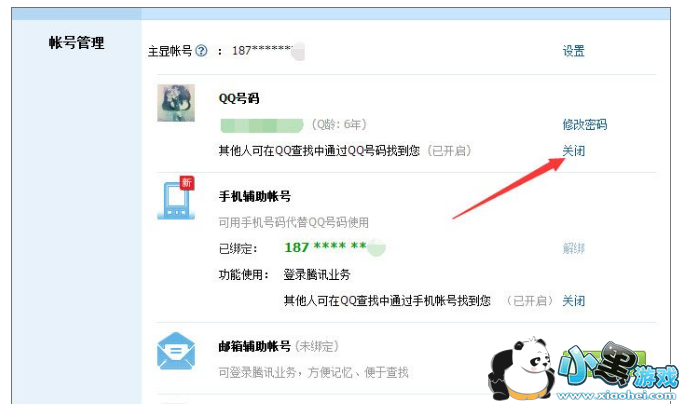 7、如果你不希望别人通过QQ号码找到你,你可以点击如图所示的“关闭”按钮,这样别人就没法搜索到你了。