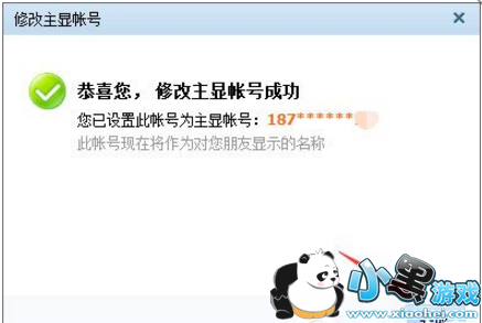 4、此时会提示“修改主显账号成功”,我们点击“完成”。