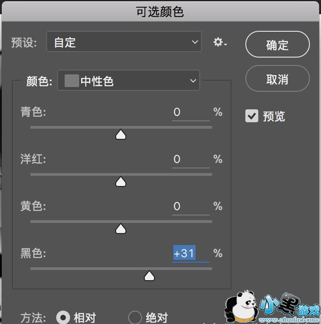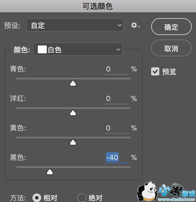 7、在【可选颜色】中,将【白色】中的【黑色】数值调低,而将【黑色】和【中和色】里的【黑色】数值调高。