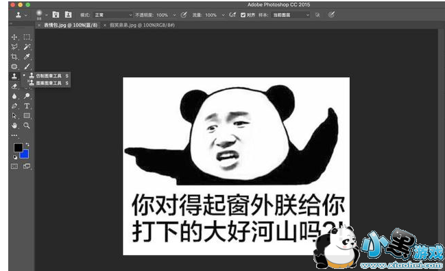 2、在左边工具栏选择【仿制图章工具】,点击快捷键【Alt】在空白部位,将表情包脸部抹成空白。