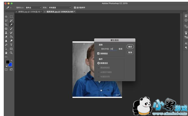 4、框好后会跳出【建立选区】选择框,在羽化半径中填写【30】像素,点击【确定】。