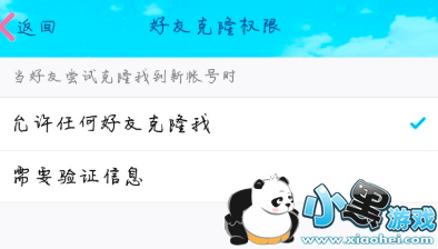 点击“允许任何好友克隆我”这一项,如此一来,好友克隆你时就不需要验证信息了。
